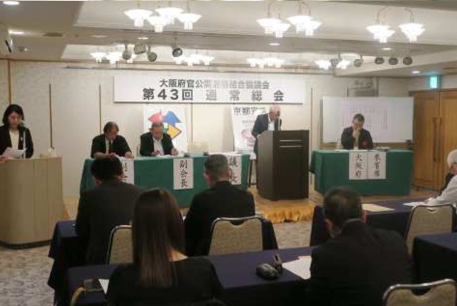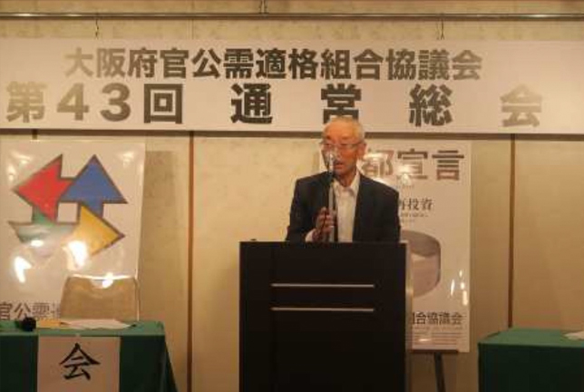 大阪府官公需適格組合協議会は、去る6月26日(木)、ホテルアウィーナ大阪において第43回通常総会を開催致しました。 総会では、大阪府商工労働部中小企業支援室商業振興課団体グループ樋口課長補佐ご臨席のもと、令和6年度 事業報告及び収支決算書、令和7年度事業計画及び収支予算、令和7年度会費の額及び徴収方法について満場一致で可決承認されました。